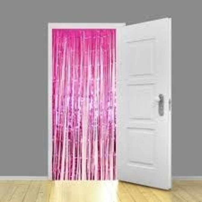 1" Wide cut - Bright Pink Tinsel Door Curtain - 3'x8'