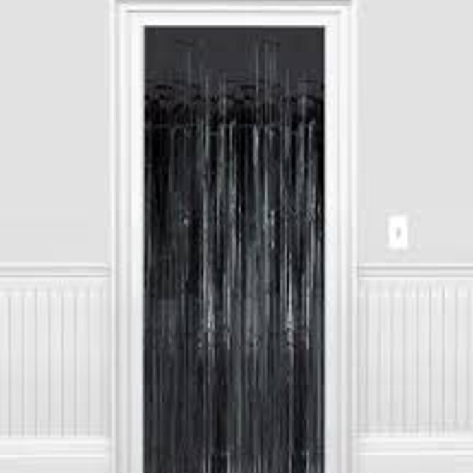 1" Wide cut - Black Tinsel Door Curtain - 3'x8'