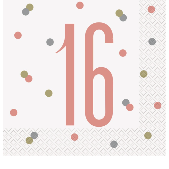 Rose Gold Glitz "16" Birthday Lunch Napkins, 16ct