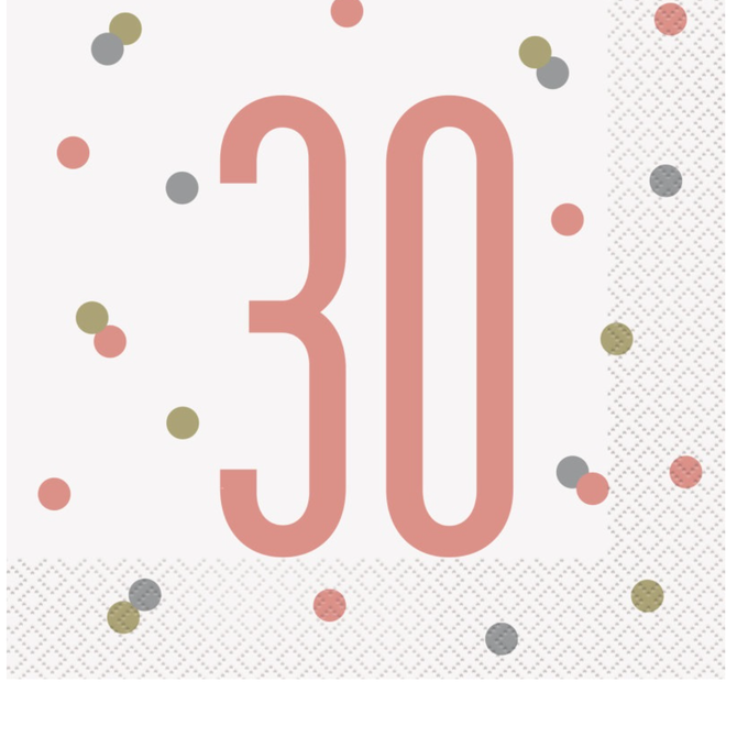 Rose Gold Glitz "30" Birthday Lunch Napkins, 16ct