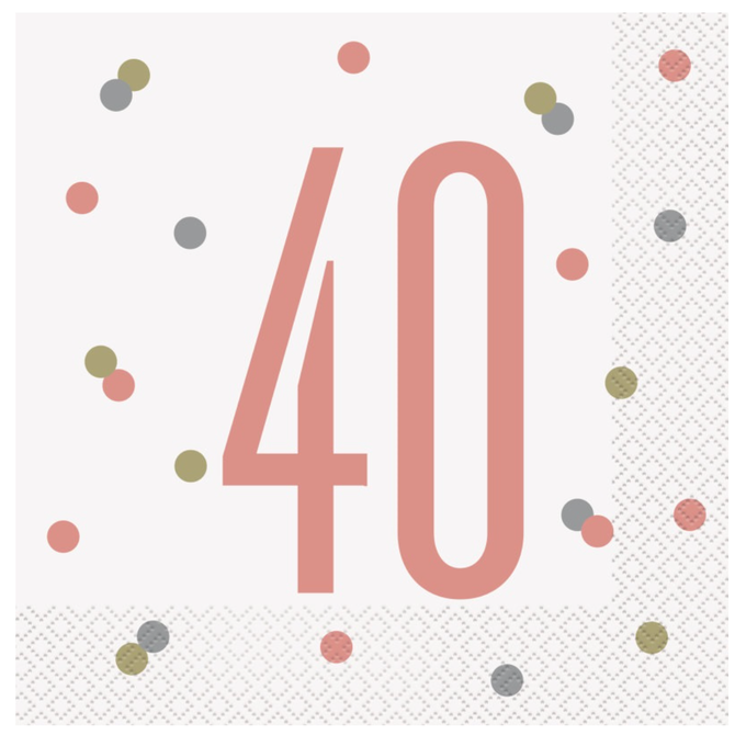 Rose Gold Glitz "40" Birthday Lunch Napkins, 16ct