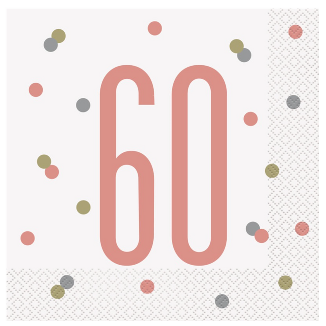 Rose Gold Glitz "60" Birthday Lunch Napkins, 16ct