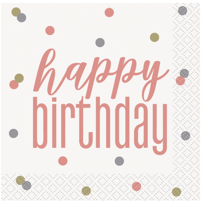 Rose Gold Glitz Happy Birthday Beverage Napkins, 16ct