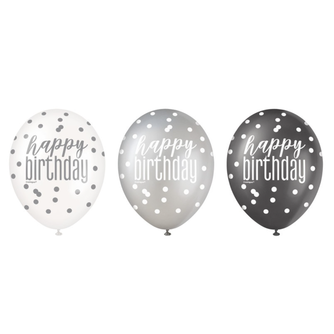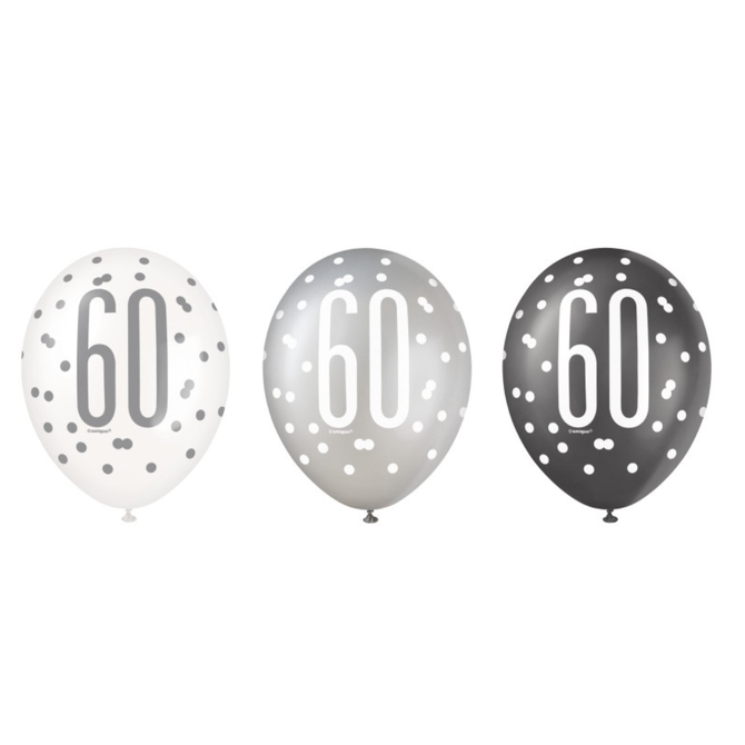 Black Glitz 60th Birthday 12" Latex Balloons, 6ct