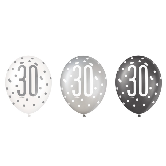 Black Glitz 30th Birthday 12" Latex Balloons, 6ct