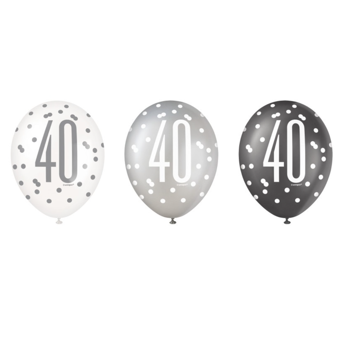 Black Glitz 40th Birthday 12" Latex Balloons, 6ct