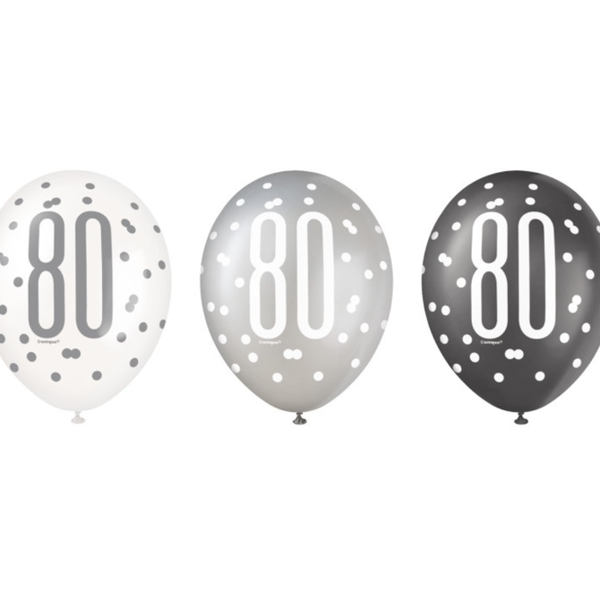 Black Glitz 80th Birthday 12" Latex Balloons, 6ct