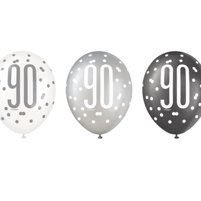 Black Glitz 90th Birthday 12" Latex Balloons, 6ct