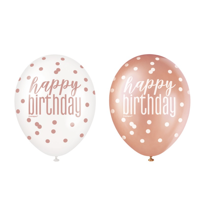 Rose Gold Glitz Happy Birthday 12" Latex Balloons, 6ct