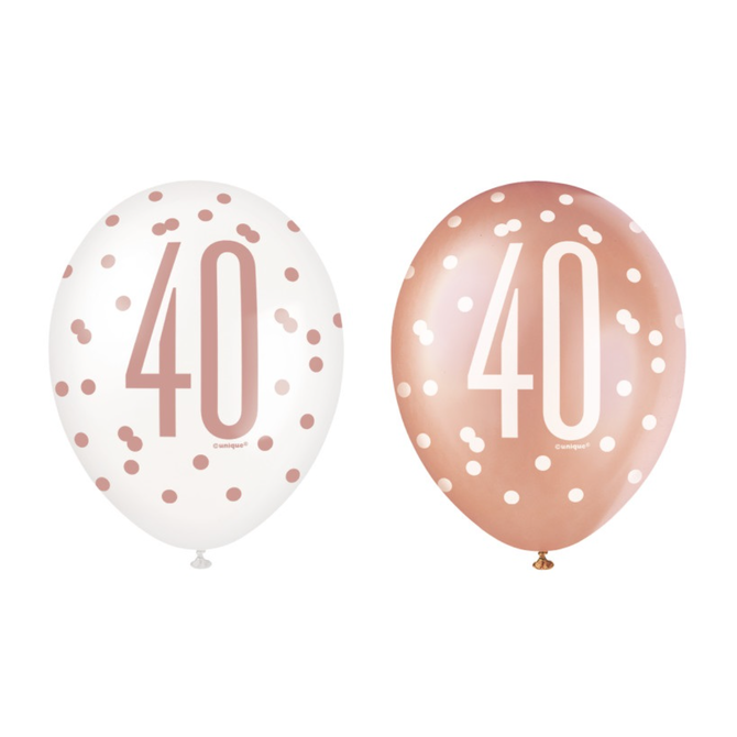 Rose Gold Glitz "40" Birthday 12" Latex Balloons, 6ct