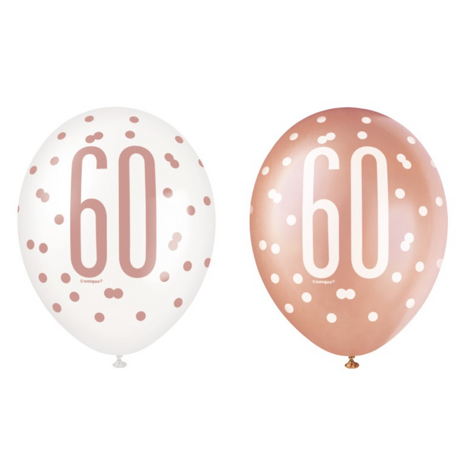 Rose Gold Glitz "60" Birthday 12" Latex Balloons, 6ct
