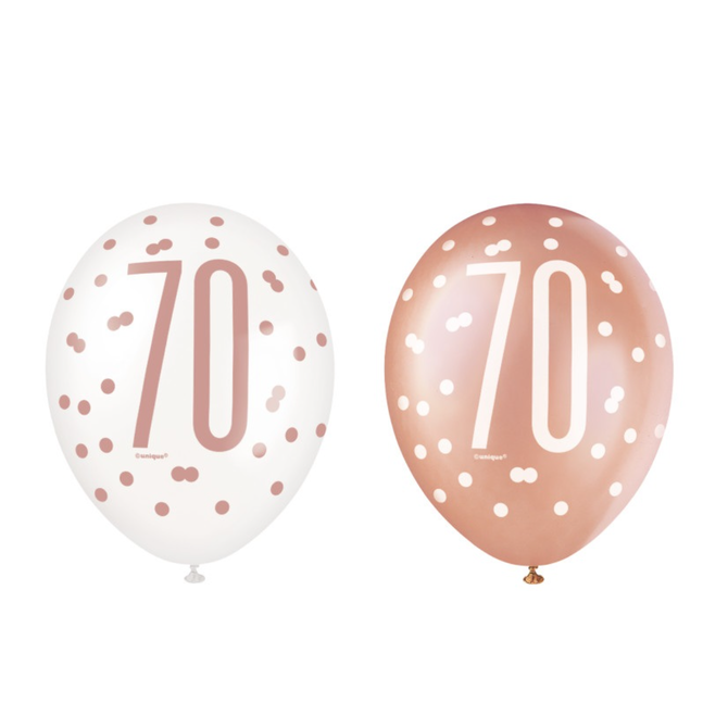 Rose Gold Glitz "70" Birthday 12" Latex Balloons, 6ct