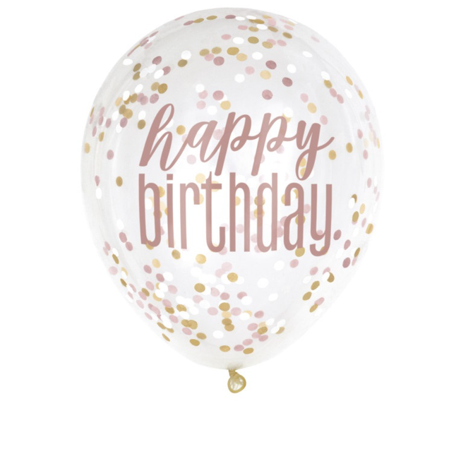 Rose Gold Glitz Happy Birthday Confetti 12" Latex Balloons, 6ct