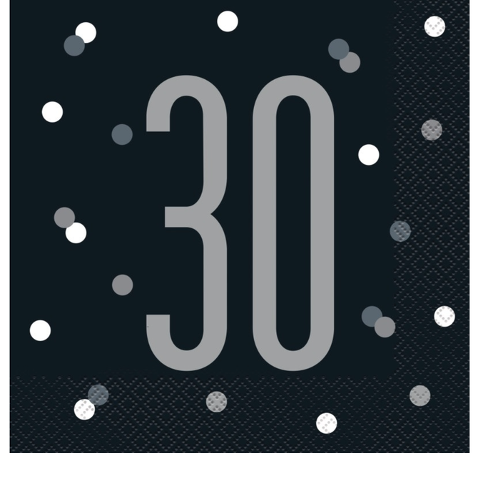 Black Glitz 30th Birthday Lunch Napkins, 16ct