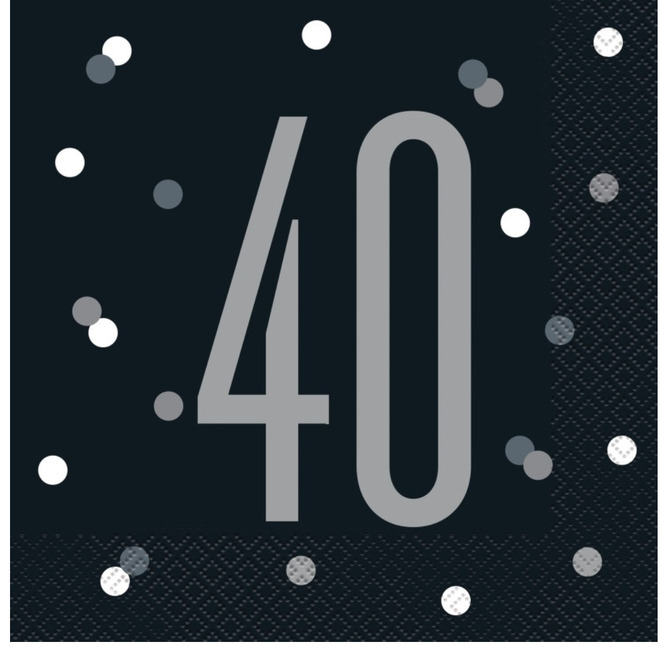 Black Glitz 40th Birthday Lunch Napkins, 16ct