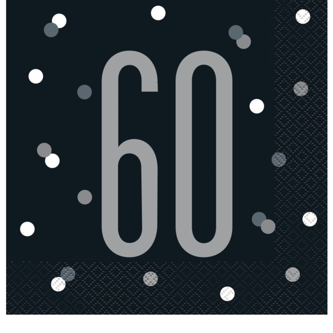 Black Glitz 60th Birthday Lunch Napkins, 16ct