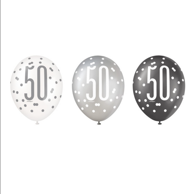 Black Glitz 50th Birthday 12" Latex Balloons, 6ct