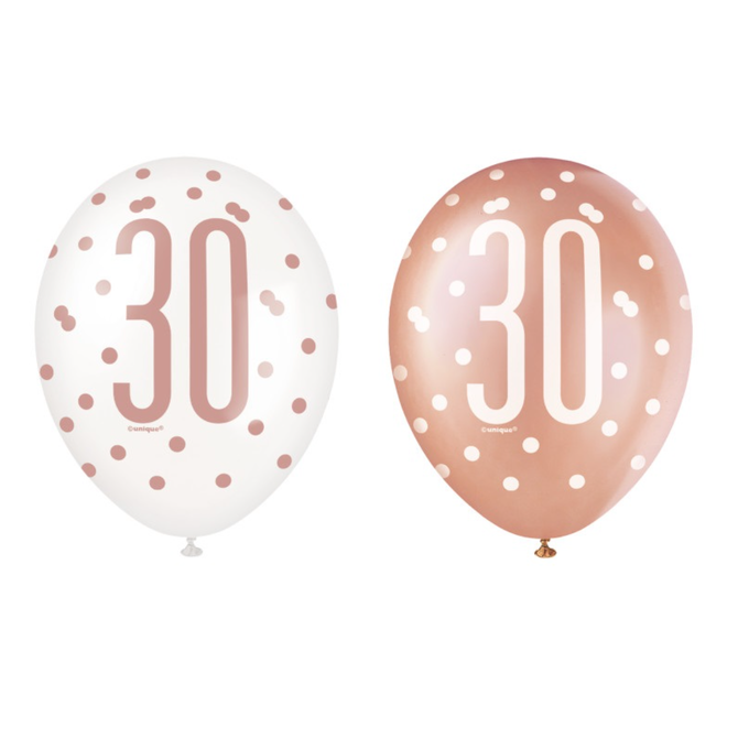 Rose Gold Glitz "30" Birthday 12" Latex Balloons, 6ct