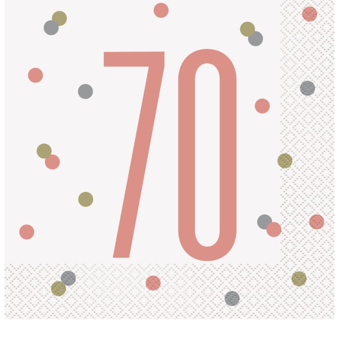 Rose Gold Glitz "70" Birthday Lunch Napkins, 16ct