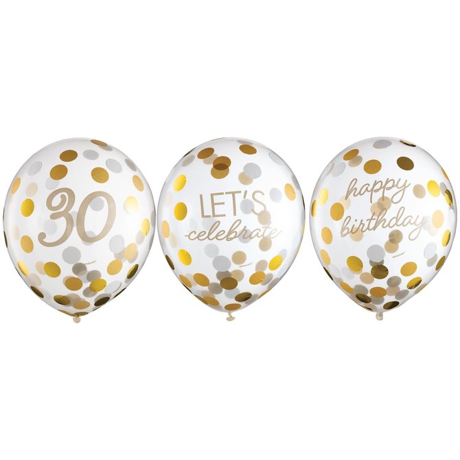 Golden Age Birthday 30th Latex Confetti Balloon -6ct